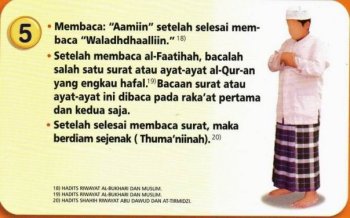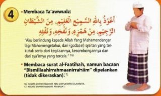 • Membaca surat al-Faatihah, namun, bacaan “Bismillaahirrahmaanirrahiim” dipelankan (tidak dikeraskan). [17]
