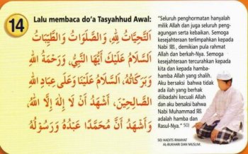 Catatan: Kami sengaja tidak menghapus gambar supaya anda lebih bisa memahami gambaran tata cara shalat yang dijelaskan di sini, karena terkadang teks saja tidak mencukupi. Dan untuk anda yang mengakses halaman ini dengan perangkat mobile kami tuliskan teks dalam gambar agar lebih membantu.